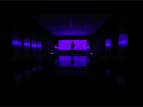 Half fixed composed and half generated, the music piece has a beginning and an end in a traditional way. This can sound peculiar for an installation but it was rather important to give the visitor an impression of time. Therefore, making a timeline with the music and the connected blinking cubes forced visitors to freely choose an abstract path inside the installation. This unique time dimension allowed me to transport minds from purely synthetic and complex rhythms to more tribal and physical tunes.