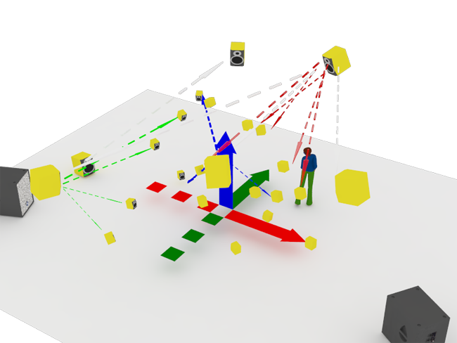 I am not planning to make sound movements but rather play with the opening and the closing of speakers. This is a technique I often use for pieces for ensemble. The sound is sent to the speakers one by one with a specific envelope of amplitude and at a specific time. The result goes from a super efficient and fast blast of sound grains to a smooth rhythmically written control of the space synched with the music itself.