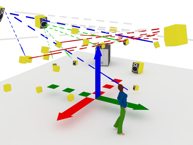 The obvious way to do so is the use of dimensions, space, and geometry. Many classical music composers use geometry. In our case since the only material constraint is perception rather than playability, it is possible to extend this geometric abstraction in space; the real world.