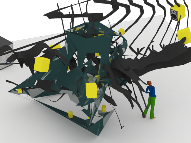 It is often difficult to make the junction between time-based art forms and installations. The struggle does not come from the piece itself but from the way, the visitor apprehends the piece with time. Therefore, the piece does have a timeline. It does not have a real beginning and end but there is a form. My tools for music formalization allow me to generate as many versions and surprises as I want while keeping a constant form. It is not a single process all along the piece but rather a controlled form as we are used to listening to popular music. The fact things are more prepared in advance allows a better control of esthetic sound processes one hears in modern music (ex: side-chain compression <- Stockhausen or Daft Punk).