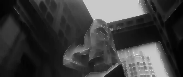 Time persistence is a very rich subject because it is a projection of movement to space. Cinema applications like time slice effects or slit-scan use this property. In the movie, a slight motion blurring effect is used only on some chosen elements in the image. This allows elements from the image to escape contours and thus make ghost images. The effect is similar to a resonance or a reverberation. In the movie, time does not effectively slow down, the reading of the audience does. Since this resonance happens during the movie’s duration, its dramaturgic evolution deeply becomes time and leaves its own interpretation and perception to the spectator. It also results in some kind of relief impression giving the impression of a new perspective.