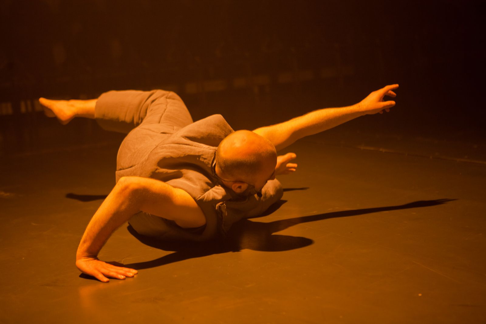 Since the acoustic music part is rather strong and intense, it is decided to make the entire show intense too. Alban Richard’s dance and the light design are then being exquisite too. The audience is very close to the soloist dancer and the dancer’s face and emotions can easily be seen. I can see Goya’s Saturn Devouring His Son in Alban’s facial expressions. It sometimes looks like Munch’s Cry or Castellucci being bitten by dogs in his Dante Inferno ‘s piece. Valérie Sigward‘s lighting uses raw light material like the ones used on construction sites. This lighting is very powerful. It also takes time to reach full brightness and its final color temperature.