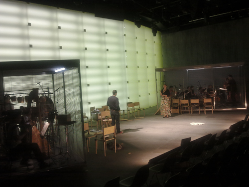 Hanna does not hear properly and uses a hearing aid device. She sometimes removes it so she can protect herself, or listen to herself. Dramaturgy for these specific moments like the opening of the opera is very specific. The acoustic world should be completely different and this is something the electronic can do. Also, the ensemble plays inside two boxes which can be closed by jalousie windows. Those windows are supposed to change the acoustics.