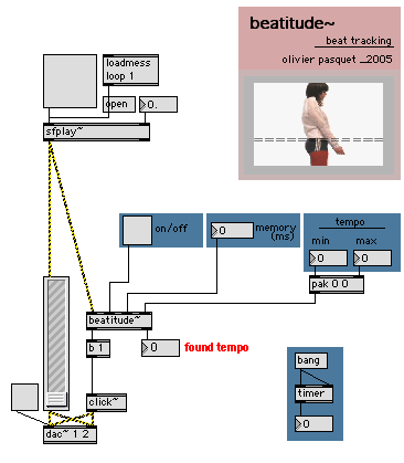 op.beatitude~ is an abstraction empirically set for beat tracking and onset detection based on the Bark spectrum. It can replace the Tristan Jehan beat~.