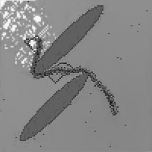 Another layer deals with the quantity of pheromones and their distribution in the space. It is a continuous accumulative ingredient over time. One radical and efficient way to describe it is distortion. The more pheromone there are the more distortion there is on a continuous base sound. A pretty harmonic and smooth continuous sound has been chosen as an opposition to the bright and tight rhythm sounds. Harmonics are continuously evolving and getting more and more distorted with a tube overdrive digital model.
