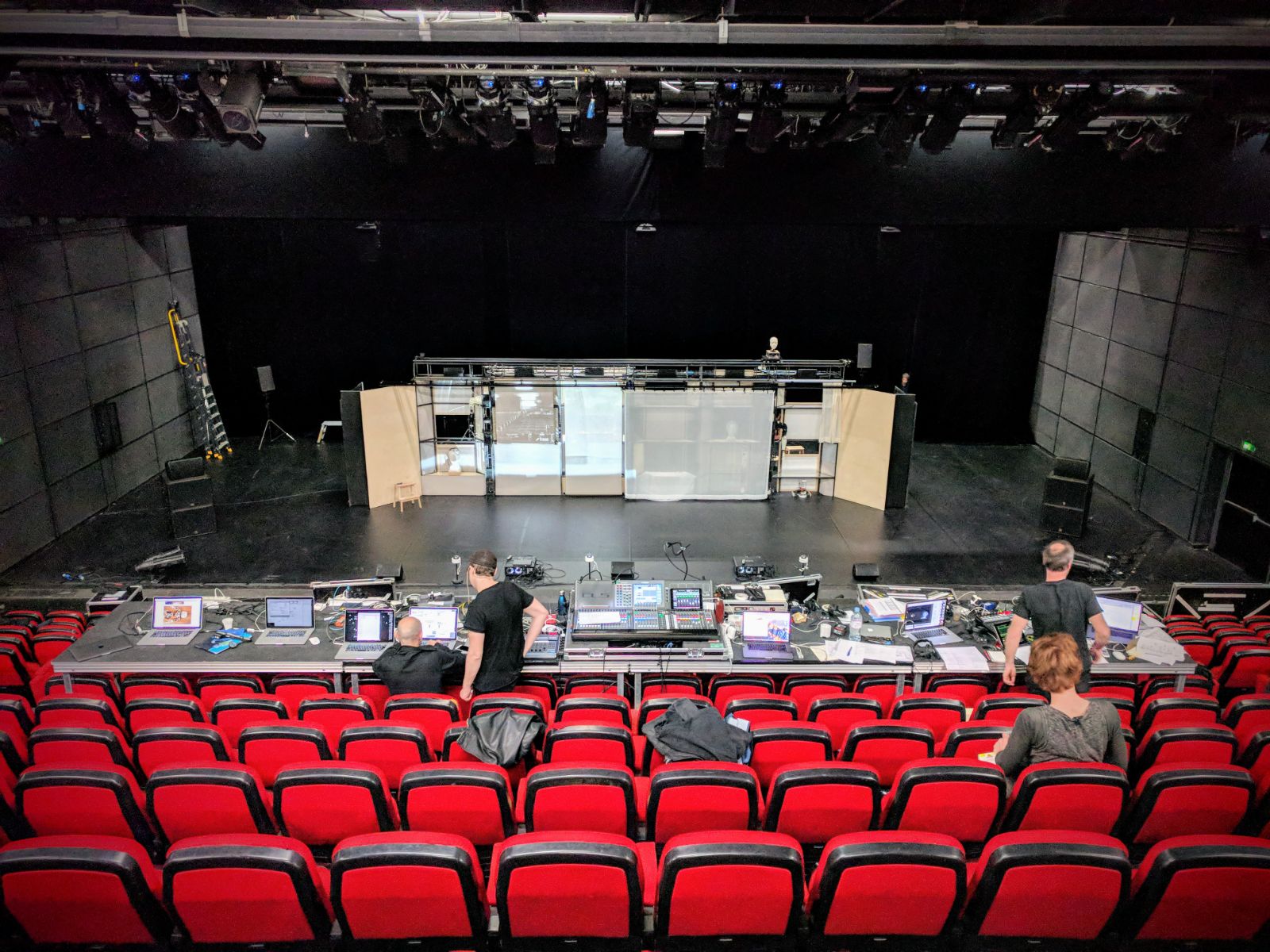 The room does not use “real” artificial intelligence. Georges wrote some parts of the piece before the rehearsals. Such a determinism does not need such a dynamic approach upstream or in real-time this performance. If we consider artificial intelligence as a tool, the questions of its use in a show are exactly the same as for real-time. To give a concrete example: generalize or make autonomous a compositional process for a piece traditionally read linearly by the public would it make sense? I think so, from the point of view of the composer. The choice of a control scale, various synchronicities, and formal determinism are for him crucial questions, which are deeply linked to cultural and aesthetic choices. We are therefore dealing with a simple intelligence; an ambiguous machine made of different natures in other natures; of a corpuscle which one understands over time of the piece that it is only a system.